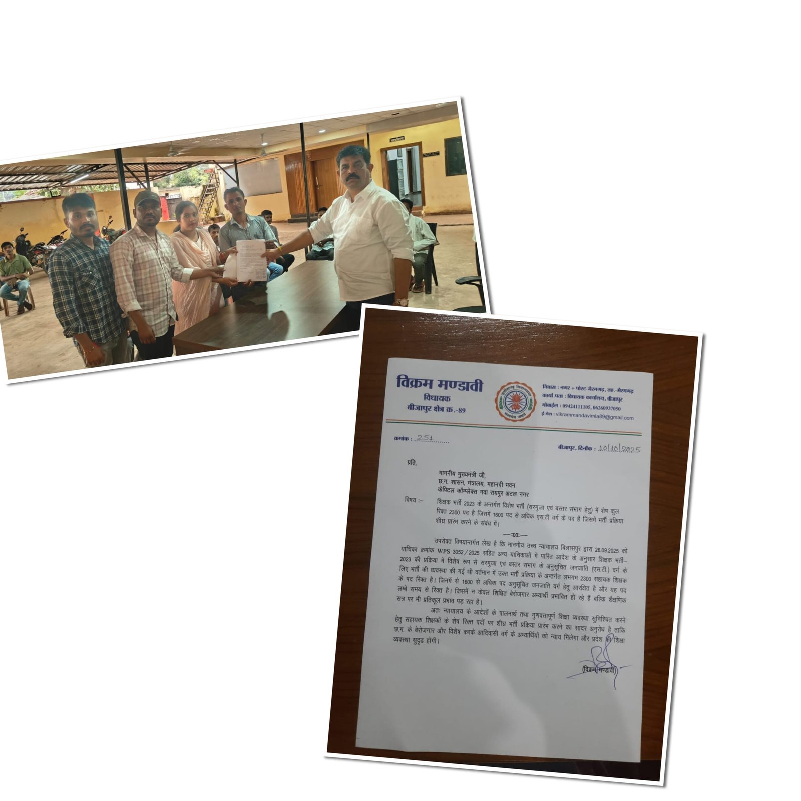 दिनांक: 10 अक्टूबर 2025 स्थान: बीजापुर डीएड अभ्यर्थियों ने विधायक विक्रमशाह मंडावी से की 2300 रिक्त पदों पर भर्ती की…